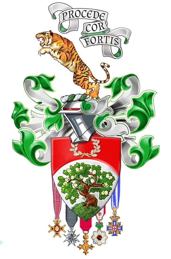 There’s a broad range of pricing to match the difference in complexity for illustrating simple divisions of the field to a quartering of as many heraldic beasts. Arms consisting of a simple division, helm, mantling, motto and shield would be £320. An achievement in the mid range would be £480